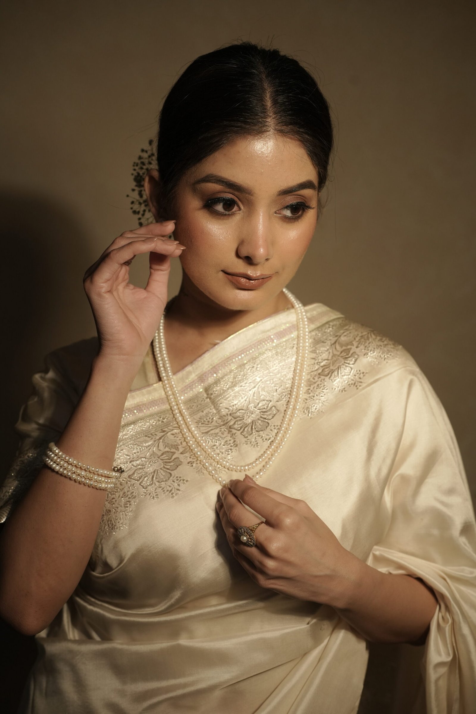• Matching pearl earrings included