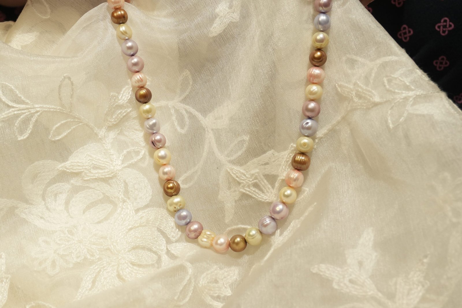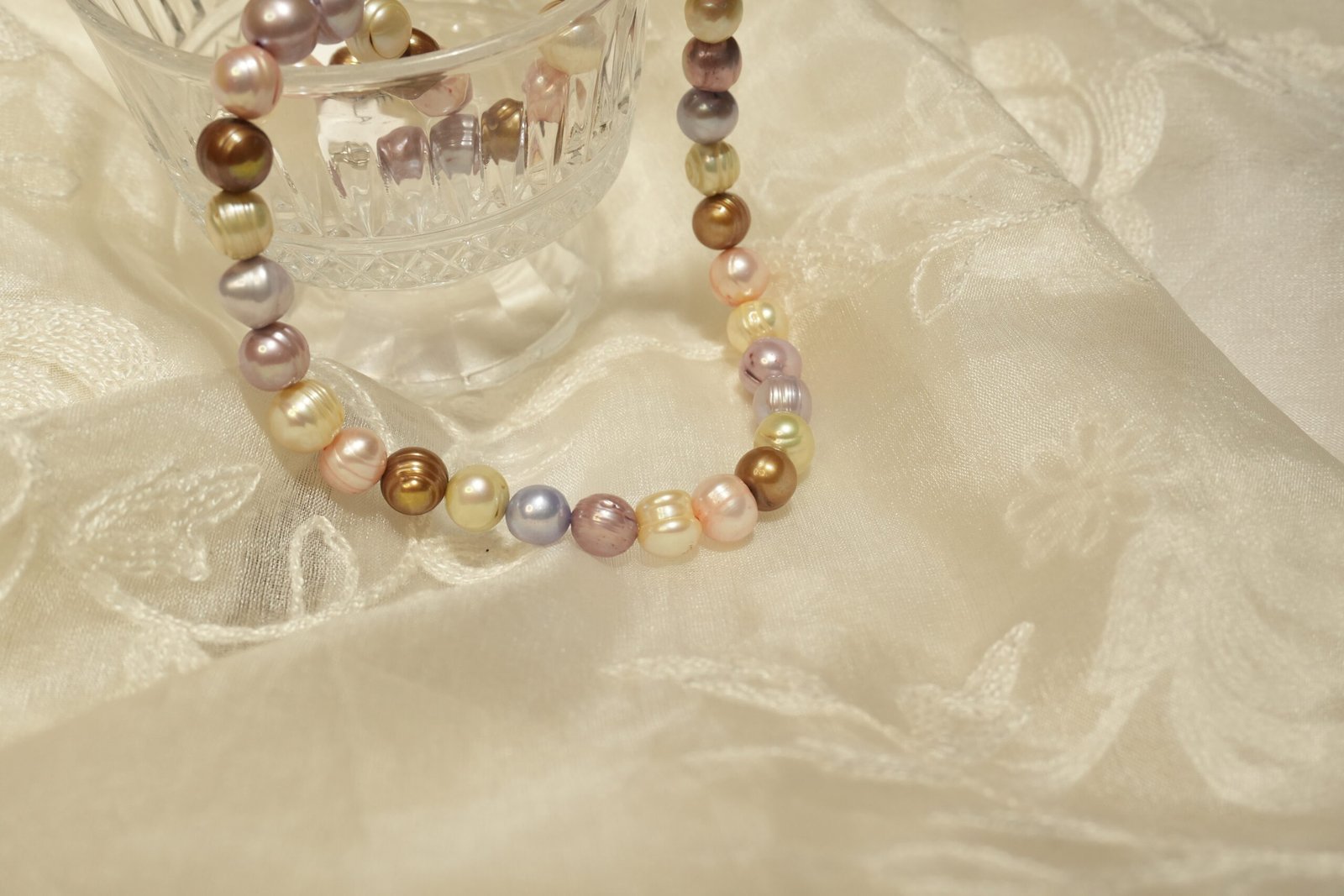 Warm, earthy, and effortlessly elegant, this single-strand necklace features freshwater pearls in a beautiful spectrum of brown shades. From soft caramel to deeper mocha tones, each pearl showcases natural variations that add richness and depth to the design.