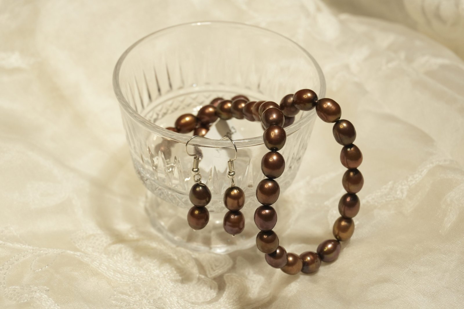 Brown Fresh Water Pearl Necklace with Metal Earrings