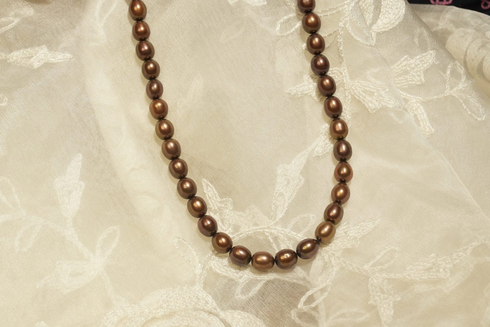 Earthy tones meet refined elegance in this brown freshwater pearl necklace set, paired with complementing metal earrings. The warm, rich hues of the pearls bring a natural sophistication, while their organic shapes add a distinctive, handcrafted appeal.