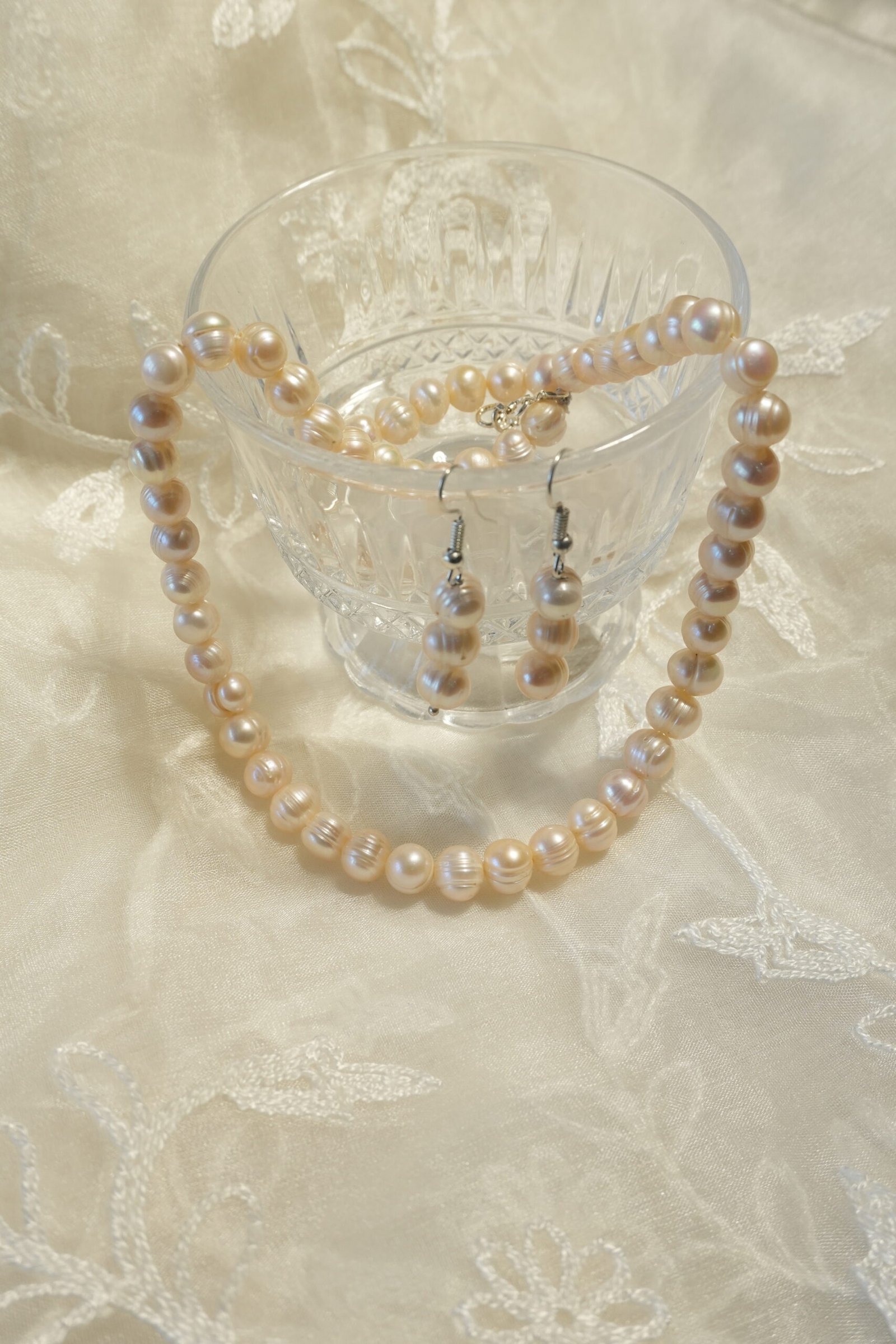 Fresh Water Pearl Necklace With Metal Clasp With Metal Earrings