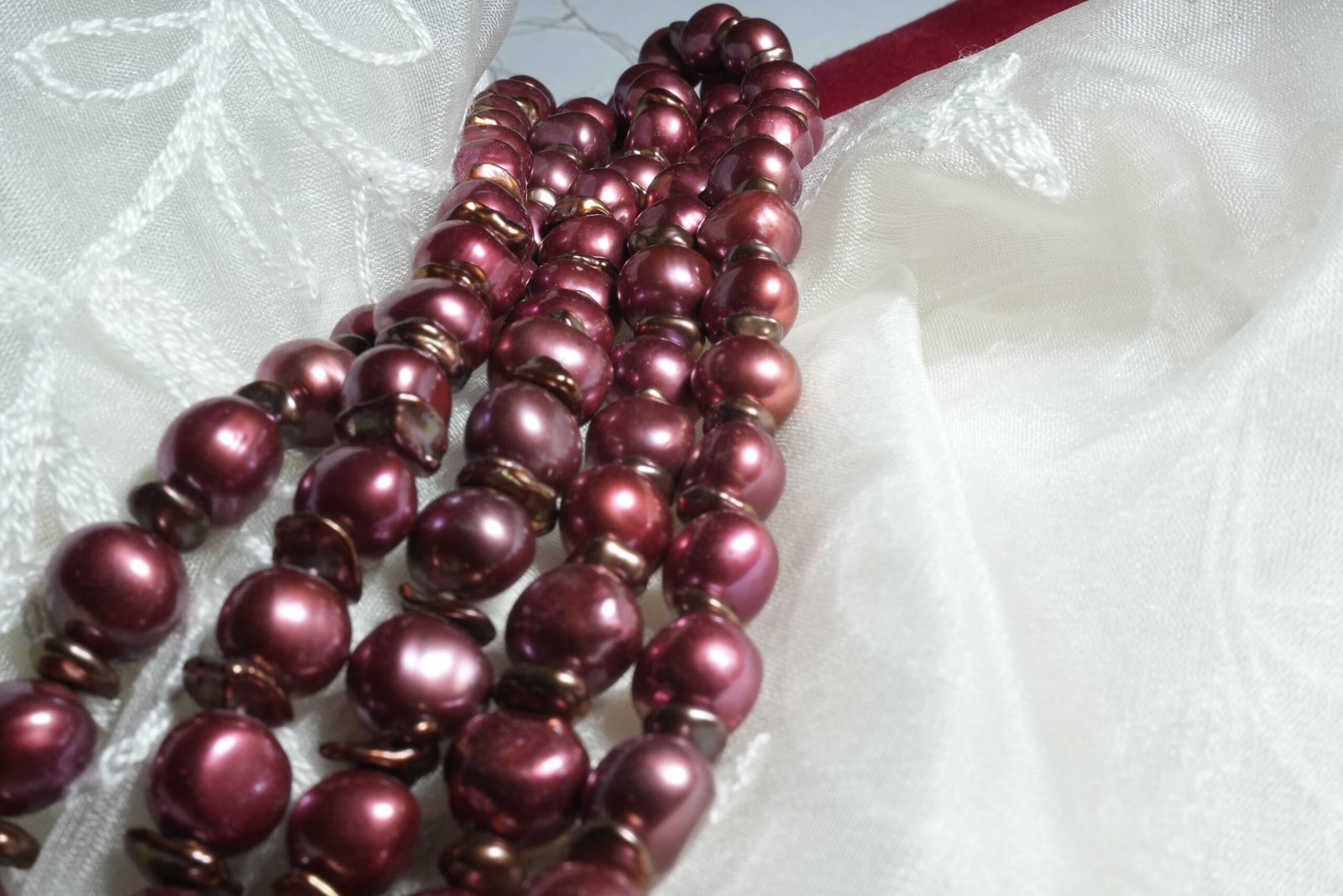 Each pearl is naturally formed, showcasing subtle variations in shape and texture—celebrating the organic beauty that makes handcrafted jewellery truly unique. The deep maroon tone adds a regal, contemporary touch, making these strings ideal for both traditional and modern designs.